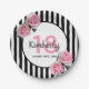 Assiettes En Carton 18e anniversaire noir rayures florales roses