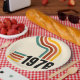 retro, vintage, gift, birth year,50th birthday ,rainbow stripe, 1975 party supplies, retro stripe paper plate, 1975 paper plate, 1974 table