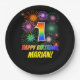 Assiettes En Carton 1er anniversaire : Fun Motif Fireworks + Rainbow 1
