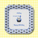 Une assiette d'anniversaire pour un enfant d'un an. Le texte est entièrement modifiable : Nom, légende, salutation. Le design comporte un panda souriant avec un ballon bleu qui a la figure 1 dessus. Un autre motif de pandas sur un arrière - plan bleu clair orne le bord de l'assiette.