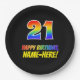 Cette conception joyeuse, amusante et colorée de plaque d'anniversaire, à thème d'anniversaire, comporte un grand nombre de "21" et le message "HAPPY BANTHDAY", tous deux ayant un dégradé de spectre arc-en-ciel inspiré couleur motif, ainsi qu'un nom personnalisé jaune audacieux. L'arrière - plan est noir de couleur. Des plaques de papier amusantes et modifiables comme celle-ci pourraient être utilisées lors d’une célébration d’anniversaire en l’honneur du 21e anniversaire de quelqu’un. [~Z0000488]