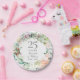 Caractéristiques une délicate guirlande florale à l'aquarelle, ces assiettes en papier chic et botanique pour le 25e anniversaire de mariage peuvent être personnalisées avec vos informations spéciales d'anniversaire d'argent en texte argent élégant. Conçu par Thisisnotme©