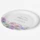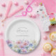 Perfect table decor for a September birthday party. Aster is the birth flower for that month. It forms a pretty watercolor bottom border on this floral personalized paper plate. The birthday guest of honor's name, age and birthdate are placed above it using elegant calligraphy and typography. All text is editable.