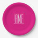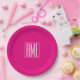 Assiettes En Carton 3 Initiales Monogramme | Blanc sur rose chaud