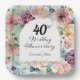 Assiettes En Carton 40e anniversaire de Mariage Élégant script floral