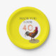 Une plaque de papier pour le 40e anniversaire Fun Photo Poulet ou Rooster party. Un poulet sur un arrière - plan jaune avec les mots "Fabriqué vous regardez". Changez l'âge à n'importe quel âge. Fait partie d'une gamme de parties personnalisées stationnaires de Just Fine Designs.