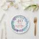 Cette plaque de papier pour la fête du 40e anniversaire du mariage présente une délicate couronne de verdure fleurie faite de fleurs bleues et de plantes sauvages. Papier Plate peut être facilement personnalisable avec vos informations spéciales d'anniversaire de rubis. Les fournitures et la papeterie pour les fêtes correspondantes sont disponibles dans la collection "40e anniversaire de Mariage Bluebells Garland".