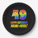 Cette conception amusante, joyeuse et colorée de plaque de papier d'anniversaire comporte un grand nombre de "49" et le message "HAPPY BANTHDAY", tous deux ayant un dégradé de arc-en-ciel inspiré colorant motif, ainsi qu'un nom personnalisé jaune audacieux. L'arrière - plan est noir de couleur. Des plaques de papier personnalisées et amusantes comme celle-ci pourraient être utilisées lors d’une célébration d’anniversaire en l’honneur du 49e anniversaire de quelqu’un. [~Z0000488]