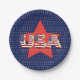 Cette assiette en papier patriotique du 4 juillet (fête de l'indépendance des États-Unis) présente un design rouge, blanc et bleu. Une étoile rouge est représentée sur un fond d'étoile rouge, blanc et bleu avec le texte USA au centre. Votre table de fête aura une ambiance festive avec cette assiette en papier.