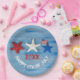 Starfish et drapeau américain sur bois bleu rustique pour 4 juillet fête de vacances.