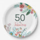 Assiette en papier aquarelle florale élégante 50 ans et fabuleuse pour votre fête d'anniversaire de 50 ans