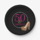Assiettes En Carton 50 cinquantième fête d'anniversaire noire rose