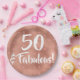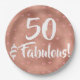 Célébrez les anniversaires avec un air. "50 (âge/année peut être customisé) et fabuleux" dans le texte blanc de brosse moderne sur cuivre et coeurs arrière - plan.