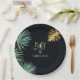 Célébrez votre 50e anniversaire avec ce design feuille tropical élégant en vert et or sur un arrière - plan bleu minuit. Utilisez les plaques en papier avec les serviettes correspondantes et l'invitation de la fête.
