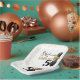 Célébrez cette étape du cinquantième anniversaire avec cette élégante et glamour petite plaque de papier carré noir et or. Elles sont également ornées de ballons de parties scintillant en noir et or, entourées d'un bord de parties scintillant doré. Créé par Simply Farmhouse Press.