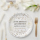 Plaques de fête du 50e anniversaire. Le design blanc et doré présente un script élégant et des confettis en étoile.