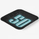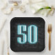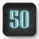 Panneau de néon d'aqua brillant sur arrière - plan en brique foncée pour une fête de 50ème anniversaire.