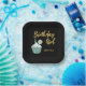 Joyeux 50e anniversaire Cupcake! Plaques en papier noir et or avec cupcake à la menthe avec espace pour votre nom et votre âge