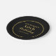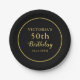 Plaques en papier noir et or pour une fête du 50e anniversaire. Le modèle permet de les personnaliser facilement avec le nom de la dame d'anniversaire, le jalon et une date.