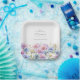 Décor de table parfait pour une fête d'anniversaire en septembre. Aster est la fleur de naissance pour ce mois-là. Il forme une jolie bordure de fond aquarelle sur cette plaque de papier floral personnalisée. Le nom, l'âge et la date de naissance de l'invité d'honneur sont placés au-dessus de celui-ci à l'aide d'élégantes calligraphies et typographies. Tout le texte est modifiable.