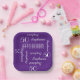CHOISISSEZ VOTRE COULEUR et créez votre propre plaque de papier élégante et personnalisée pour une fête du 50e anniversaire ou toute autre occasion. Le nom et l'âge se répètent en blanc. Ce style est par défaut un arrière - plan violet profond, mais vous pouvez facilement sélectionner une couleur arrière - plan différente. Vous êtes le designer ! Facile à personnaliser - il suffit de CHANGER LE NOM, L'ÂGE et L'OCCASION EN UN SEUL ENDROIT. Prend en charge le nom jusqu'à 9 caractères. Une plaque en papier élégante, élégante et moderne pour la fête d'anniversaire. Choisissez carré ou rond. Des serviettes assorties sont disponibles dans ma boutique zazzle, SocolikCardShop. Tous droits réservés © 2015 Alan & Marcia Socolik.