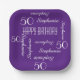 Assiettes En Carton 50e fête d'anniversaire répétée Nom Carré pourpre