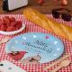 This personalized paper plate makes a cheery decoration for a couple celebrating a 55 year wedding anniversary! A pair of cardinal birds pops up below elegant script text that reads, “55th Anniversary” and two names and a wedding date which can be customized. Hearts form a circular border around the design.