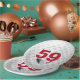 Gros plan d'un motif de balle de golf blanc avec un club de golf pour la fête du 59ème anniversaire. L'âge est modifiable. Le nombre et le club de golf peuvent être supprimés.
