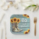60 Fabuleux Anniversaire Rustique Pays Occidental Tournesol Boots Custom Paper Party Plaques présente une aquarelle illustrant des bottes de cowgirl remplies de tournesols jaunes sur un arrière - plan rustique en bois avec le texte "60 et fabuleux!" dans la typographie de script moderne et accentué de fausse parties scintillant argent. Conçu par Evco Studio www.zazzle.com/store/evcostudio