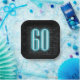 Panneau de néon d'aqua brillant sur arrière - plan en brique foncée pour une fête de 60ème anniversaire.