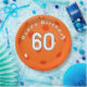 Gros plan d'un pickleball orange pour un 60e anniversaire. Tout le texte peut être modifié ou supprimé.