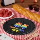 Cette conception amusante, joyeuse et colorée de plaque d'anniversaire comporte un grand nombre de "64" et le message "HAPPY BANTHDAY", tous deux colorés avec un motif inspiré par un gradient de spectre arc-en-ciel, ainsi qu'un nom personnalisable jaune gras. Il a un arrière - plan de couleur noire. Des plaques de papier amusantes et modifiables comme celle-ci pourraient être utilisées lors d’une fête d’anniversaire pour célébrer le soixante-quatrième anniversaire de quelqu’un. [~Z0000488]
