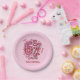 This personalized girls seventh birthday paper plate design inspired by the playful 'six turning seven' meme style brings a fun, trendy, and charming touch to birthday celebrations. Its eye-catching design features bold illustrated numbers styled with soft textures, cozy patterns, and cute bow accents that create a sweet yet modern look perfect for girls turning seven. A warm pink color palette sets a cheerful and joyful tone, while scattered heart elements add a loving, celebratory feel that works beautifully against the soft pink background. The hand drawn typography and layered graphic style gives the party paper plates a boutique inspired aesthetic that feels current, stylish, and memorable. Subtle stitched details and whimsical accents add depth and personality without overwhelming the layout, keeping the milestone age as the clear focal point. Designed to feel girly, playful, and on trend, this paper plate complements pink themed parties, modern birthday setups, and meme inspired celebrations. Ideal for parents planning a cohesive party look, this design helps elevate party paper plates with a cute, personalized touch that captures the excitement of turning seven in a fun and fashionable way guests will love.