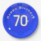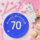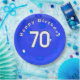 Gros plan d'un pickleball bleu néon pour un 70e anniversaire. Tout le texte peut être modifié ou supprimé.