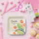 70th birthday party plates featuring a delicate hand painted watercolor parakeet perched among soft blooming tulips on a warm, peaceful background. Designed with gentle detail and calming color, this elegant nature inspired paper plates offers a beautiful way to celebrate a milestone birthday with grace, warmth, and meaning.