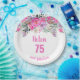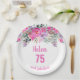 Plaques en papier à aquarelle rose de 75e anniversaire. Personnalisez avec nom, âge et texte.