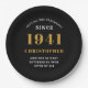 Une plaque de papier classique personnalisée pour cette fête d'anniversaire pour une personne spéciale née en 1941 et tournant 80 ans. Ajoutez le nom à ce design vintage de style rétro noir, blanc et or pour un cadeau personnalisé de 80ème anniversaire. Modifiez facilement le nom et l'année avec le modèle fourni. Un merveilleux cadeau d'anniversaire personnalisé. Plus de cadeaux et de fournitures de fête pour cette célébration de la 80e fête disponibles dans le magasin.