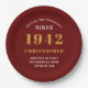 Une plaque de papier classique personnalisée pour cette fête d'anniversaire pour une personne spéciale née en 1942 et ayant 80 ans. Ajoutez le nom à ce design vintage de style rétro rouge, blanc et or pour un cadeau personnalisé de 80ème anniversaire. Modifiez facilement le nom et l'année avec le modèle fourni. Un merveilleux cadeau d'anniversaire personnalisé. Plus de cadeaux et de fournitures de fête pour cette célébration de la 80e fête disponibles dans le magasin.