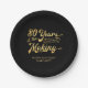 Retro 80e anniversaire personnalisées plaques de papier de fête avec le titre 80 ANS DANS LA FABRICATION dans une typographie de script de calligraphie qui incorpore son année de naissance dans le design et votre texte personnalisé ci-dessous (l'exemple montre HAPPY BANTHDAY NAME) en or et votre choix de couleur arrière - plan (montré en noir). ASSISTANCE : Pour obtenir de l'aide sur la modification ou la personnalisation de la conception, le transfert de la conception à un autre produit ou si vous souhaitez coordonner des éléments, contactez le concepteur AVANT LA COMMANDE via l'onglet MESSAGE Conversation Zazzle ci-dessous ou envoyez un courriel à makeitaboutyoustore@gmail.com.