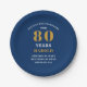 Assiettes En Carton 80e anniversaire Bleu et Or