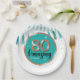 80e fête d'anniversaire Extraordinaire Turquoise Rose or Elegant Plaques papier - Turquoise plaque de fête de 80e anniversaire. Des goûters amusants au sommet. Nom de l'anniversaire ci-dessous "extraordinaire". Simple et élégant.