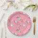 Le motif des assiettes de fête en papier amusant présente le style des années 1990 des formes géométriques abstraites et des gribouillis dans les couleurs les plus chaudes de la décennie — le tout sur un arrière - plan rose.