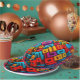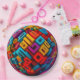 Colorful shapes cover this 9" round paper plate. This unique design will add color and vibrancy to your party decor!