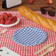 Assiettes En Carton À damiers Bleu et Blanc En vichy Carré OZ Party