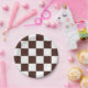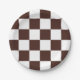 Plaque de papier avec un motif à damiers marron et blanc. Parfait pour tout rassemblement.