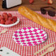 Assiettes En Carton à damiers carré chaud rose blanc rétro géométrique
