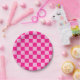 Assiettes En Carton à damiers carré léger rose chaud rétro géométrique