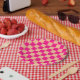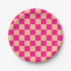 Assiettes En Carton à damiers carré pêche rose chaud rétro géométrique