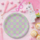 Assiettes En Carton à damiers Love-Pastel rose, jaune, violet et vert