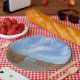 Cette plaque en papier présente une scène estivale de Hammonasset Beach à Madison, dans le Connecticut. Il y a des serviettes à disposition. Idéal pour les occasions estivales !